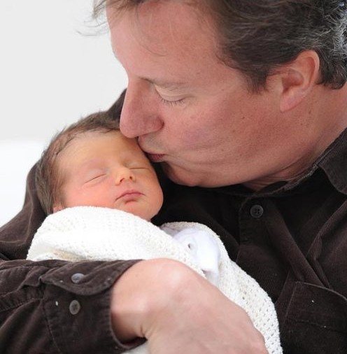 2010年8月28日,英国康沃尔,英国首相卡梅伦和刚出生四天的女儿Florence Rose Endellion一起亮相。