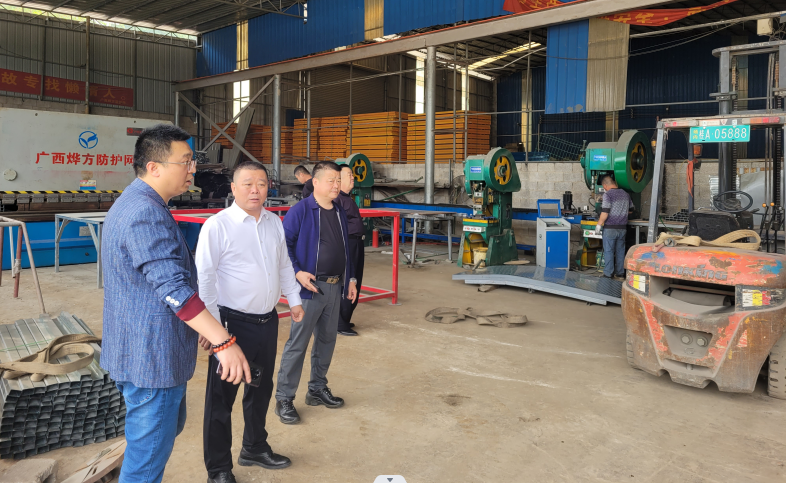 随后,走访小组来到了位于武鸣区伊岭岩常务副会长企业广西烨方筛网制造有限公司。总经理张岳嵩对商会到访领导表示欢迎,并就公司情况做介绍:公司始建于2008年11月,是一家集生产、加工、销售及安装为一体的专业生产厂家生产经营:安全防护栏、高速隔离栅、机场钢筋围界、桥梁防落网、光伏围栏网、石笼网、铁路护栏、基坑护栏、锌钢护栏、市政护栏、移动铁马、拒马护栏、塑料网、三维植被网、水泥木屑声屏障、轻质聚粒微孔声屏障、ECP 轻质高强声屏障、水泥立柱、电缆沟盖板等等系列产品。