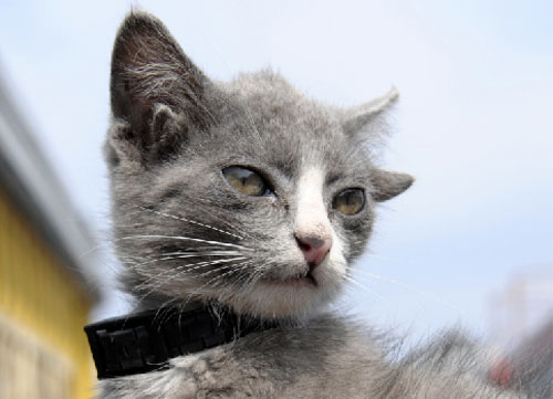俄罗斯符拉迪沃斯托克一个车房住了一只名为Luntik的3岁小猫,牠奇特之处在于拥有4只耳朵。