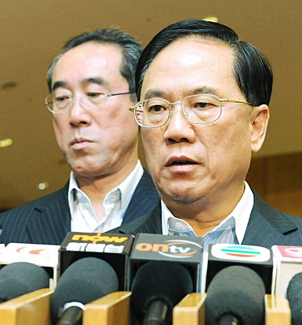 8月23日,香港特区行政长官曾荫权(右)就菲律宾劫持事件会见记者。香港特区行政长官曾荫权23日晚表示,对有香港游客在菲律宾劫持事件中遇害感到十分悲伤,对凶手冷血的行为感到愤怒。“我要向死伤者家属致以最深切的慰问,特区政府会向伤者和家属提供一些可能的协助,帮他们度过这个困难时刻。”